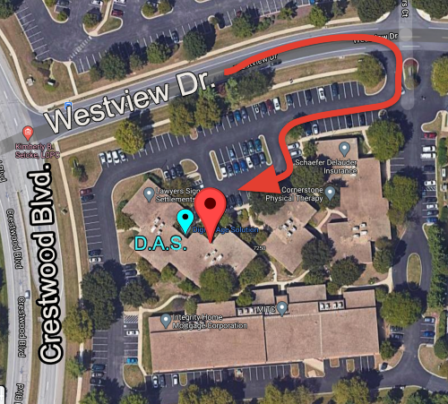 Upon entering the 5300 Westview Drive complex, turn right. Pass the small parking lot on the left, and park in the next larger parking lot on the left.